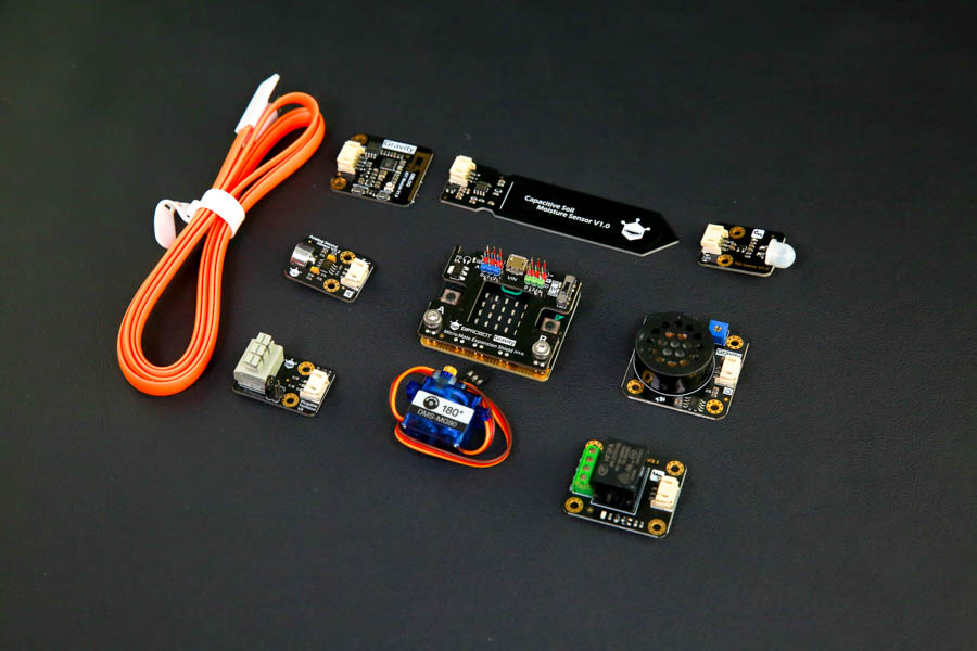 The kit comes with a micro:bit microcontroller, a Wi-Fi module and 7 sensors/actuators that are wildly used in real-life IoT applications.