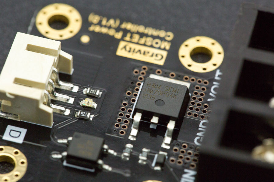 The MOSFET power controller is a module which can drive a large current device with limited current GPIO. It works as a MOSFET relay or MOSFET driver. When you give it a digital high-level signal (3.3~10V), MOSFET turns on, vice versa.