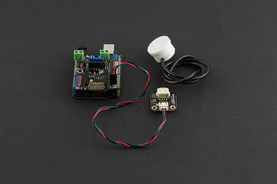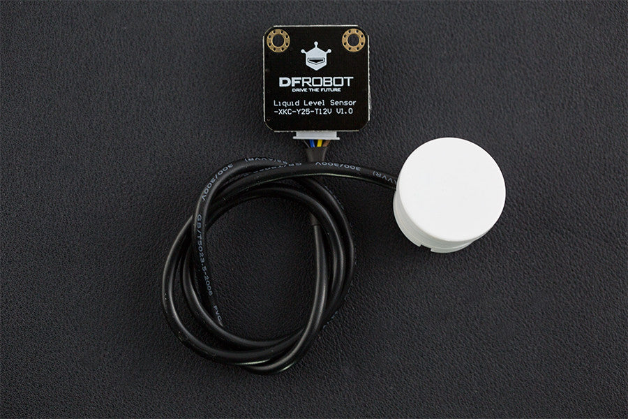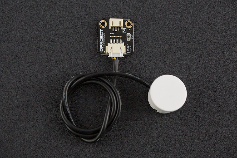 The liquid level sensor is equipped with an interface adapter that makes it compatible with DFRobot "Gravity" interface. Four levels of sensitivity can be configured by pressing the SET button.