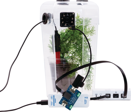 Monitor, study, and automate terrarium conditions by adding a //control.Node and accessory, such as the Grow Light (PS-3347), the USB Fan (PS-6206), or the USB Pump (SE-6208).