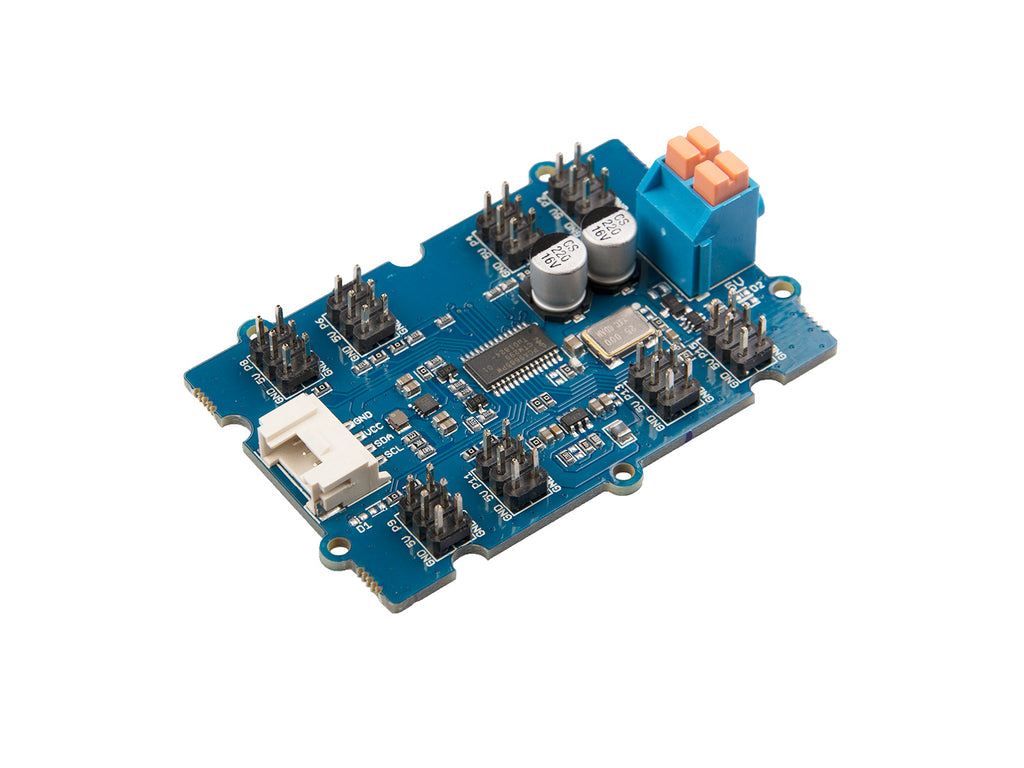 The Grove - 16-Channel PWM Driver is based on NXP PCA9685, which is a 16-Channel, 12 bit I2C PWM driver. This board can drive up to 16 servos with the external power supply. You can control this board with Arduino easily via the I2C Grove interface. In addition, you can use this board as a LED controller.