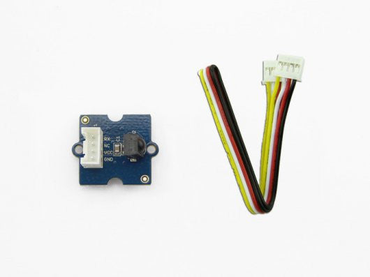 The Infrared Receiver is used to receive infrared signals and also used for remote control detection. There is a IR detector on the Infrared Receiver which is used to get the infrared light emitted by the Infrared Emitter. The IR detector have a demodulator inside that looks for modulated IR at 38 KHz. The Infrared Receiver can receive signals well within 10 meters. If more than 10 meters , the receiver may not get the signals. We often use the two Twigs-the Infrared Receiver and the Infrared Emitter to work together.