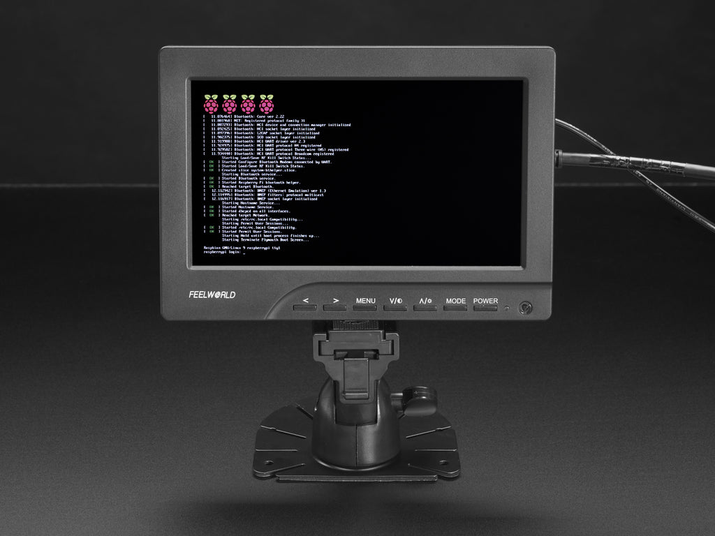 To demonstrate it, we took some photos with the display connected to a Raspberry Pi, but it will also work connected to any device with HDMI, VGA or NTSC/PAL output. It will not work with a device that only outputs DVI (without a DVI->HDMI converter) or SECAM.