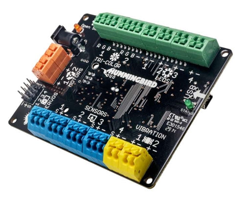 Contains assembled Hummingbird circuit board only. The Duo controller does not include a USB cable, auxiliary power supply, snap-in standoffs, or terminal tool.
