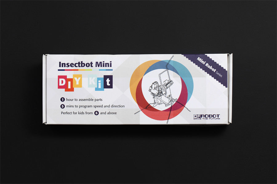 The Insect Bot mini is an easy to assemble robot for young engineers from 6 to 100. With assembling this robot you will learn the basic robotics in terms of how all the components work together. There is a microcontroller which is working as the robot brain and two servo motors for the movement. The IR sensor on it's head will act as an eye to detect obstacles in front. The programming can be done by simply connecting the Beetle controller with the USB port on your computer. It is the best way to start building robot on Arduino.