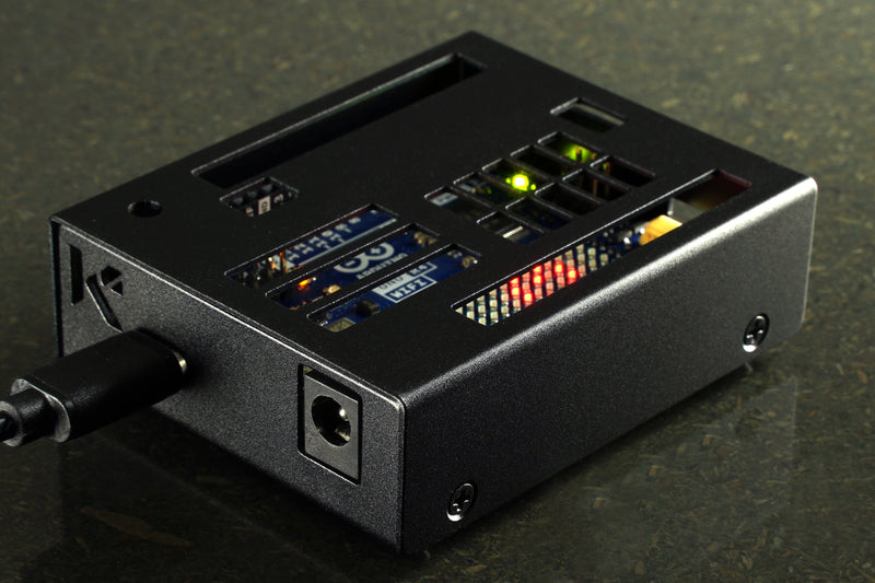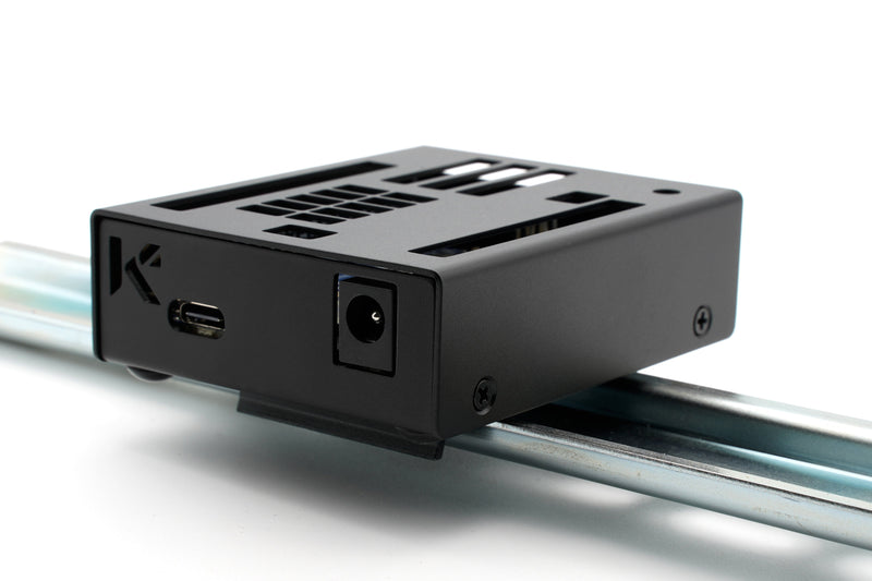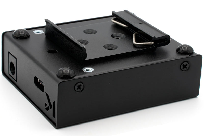 Compact and minimal, this case is suitable for a range of environments. Whether mounted on the DIN Rail, or simply placed on a table or wall, its lightweight yet sturdy construction makes it an attractive addition to any space. Its sleek black anodised coating not only enhances its visual appeal but also ensures durability in diverse conditions.