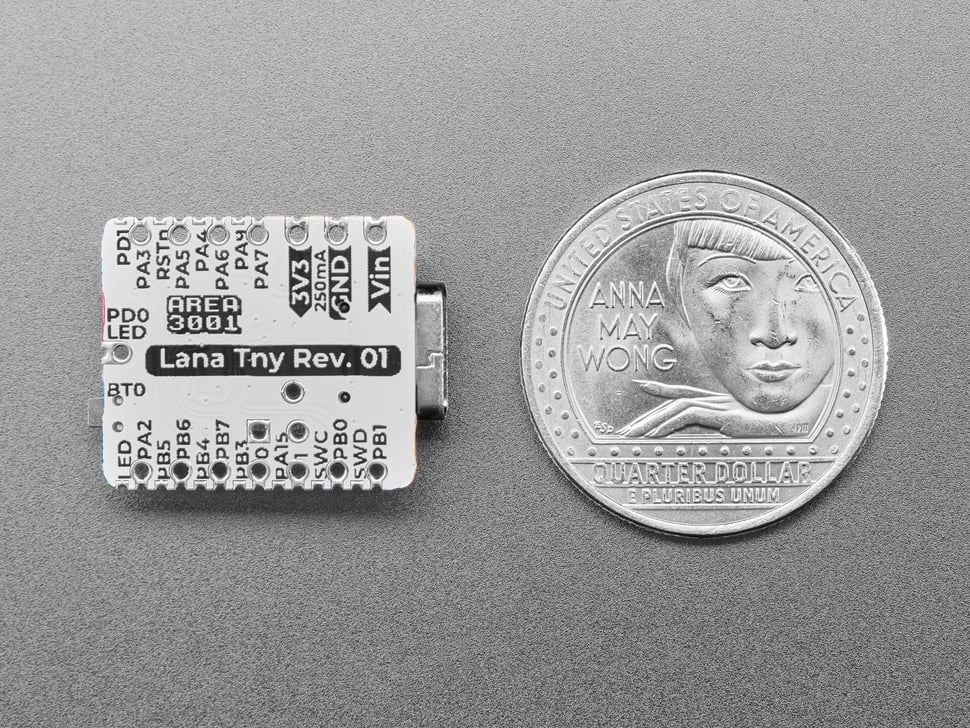 TNY is PHVX BV's take on our Adafruit QT Py and Seeed studio XIAO bite-sized development boards but with added SMD pins for optional extra IO capabilities and a built-in WS2811 compatible LED output. The LANA TNY is a small development board based around the WCH CH32V203 RISC-V microcontroller.