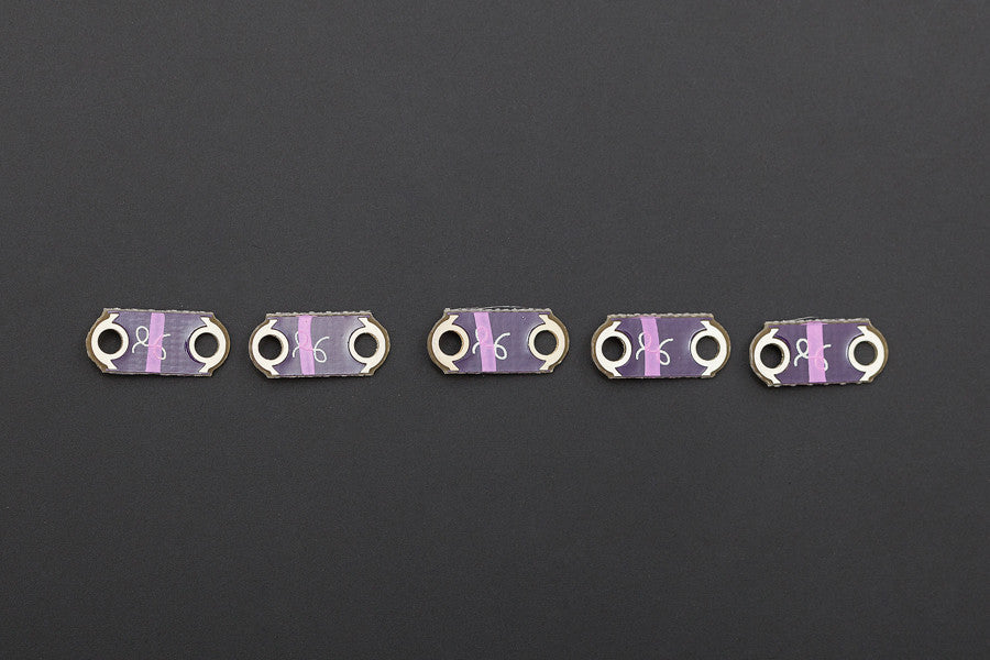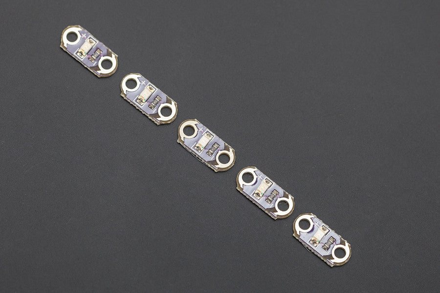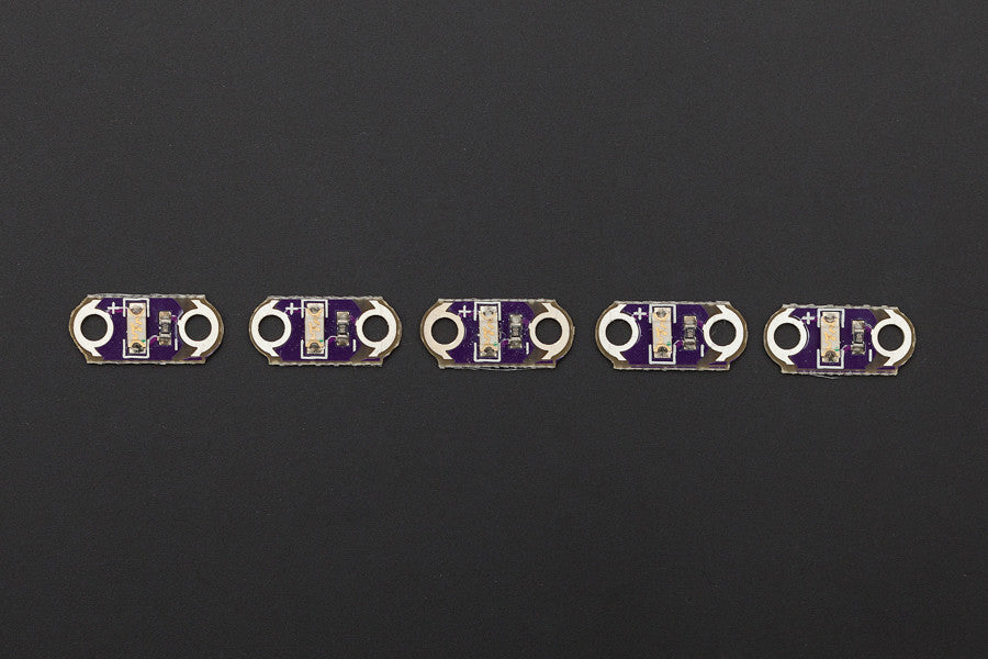 Note: The purple LED has a much higher voltage drop than other LilyPad LEDs so it will be dimmer than the others.