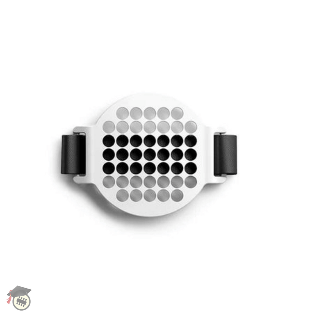 The littleBits hand mount allows for convenient attachment of the electronic components to the body. A light sensor can be affixed to the palm to measure light intensity in a given environment, or the round LED matrix can be used to create visually appealing animations on the back of the hand.