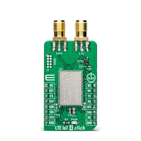 LTE IoT 4 Click is based on the nRF9160, a compact, highly-integrated System-in-Package (SiP) with integrated ARM® Cortex®-M33 processor, multimode LTE-M/ NB-IoT modem, RF front end (RFFE), GPS, and power management from Nordic Semiconductor. ARM® Cortex®-M33 processor is supported by 1MB of Flash and 256KB RAM memory with advanced security features, like Arm CryptoCell that enhances security by offering cryptographic and security resources to help to protect your IoT applications from various attack threats. It also has built-in assisted GPS suitable for tracking applications that combines location data from the Cloud with GPS satellite to allow remote monitoring of the device position. The nRF9160 is certified to operate in the most important regions, networks, and LTE bands around the world.