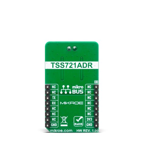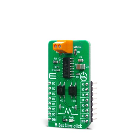 Type RS232 Applications Remote sensor reading, remote control over M-Bus On-board modules M-Bus Slave Click uses the TSS721A IC, a single chip transceiver developed for Meter-Bus standard, from Texas Instruments Key Features Galvanically isolated, Slave node Interface UART Compatibility mikroBUS Click board size M (42.9 x 25.4 mm) Input Voltage 3.3V
