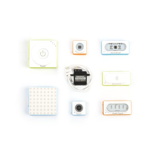 - Output blocks: Dual Servo Driver + Servo, LED Panel, Buzzer