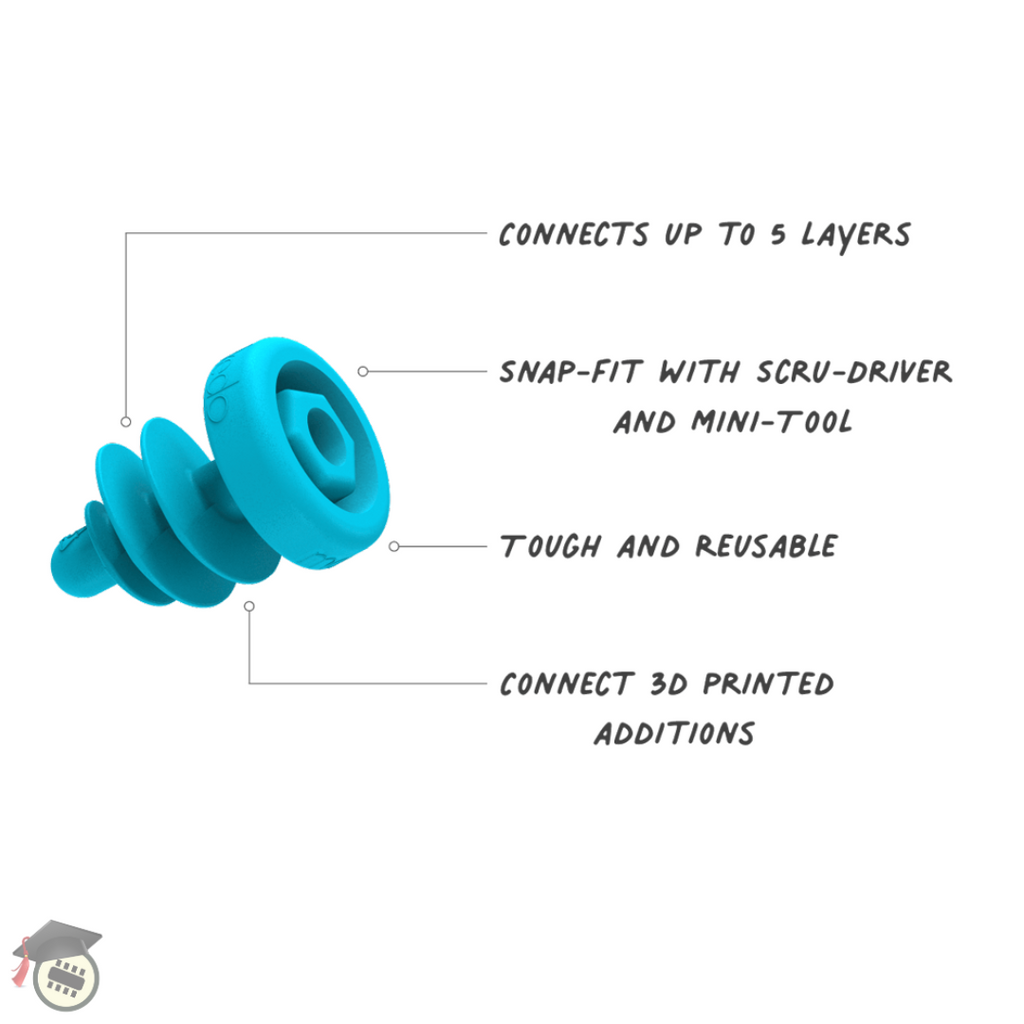 It can also be used to attach 3d printable Makedo parts such as hinges and angle brackets.