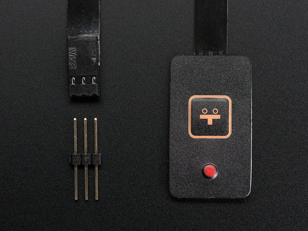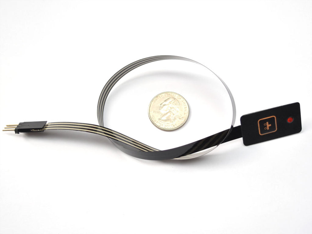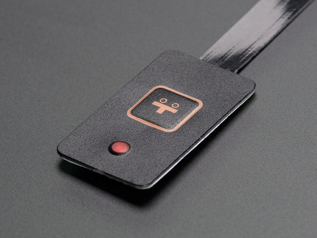This membrane keypad has a single key, but it does have an embedded surface-mount red LED installed. The flex cable is also extra-long, so we can think of a lot of wearable and portable projects that would use this sort of switch and have an LED as feedback (say, to indicate that an action is occuring or the power is on). Since the keypad is soft plastic, it can be sewn with needle and thread.