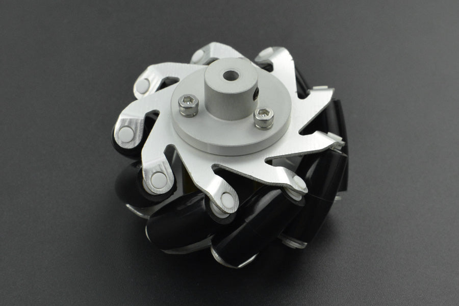 Different from the ordinary Mecanum wheel, this wheel, with better quality and texture, is equipped with metal exterior structure and has its own coupling matching with various motor shafts, which makes it quite easy to install. This Mecanum wheel has a diameter of 65mm and is composed of 9 small rollers that are made of plastic and coated with quality and high-friction silicone rubber, which are rugged and impact-resistant.