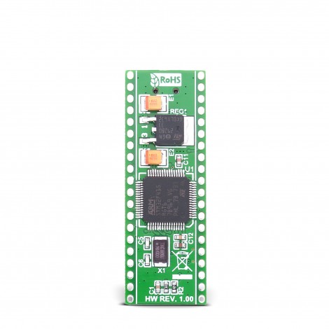Board operates on 3.3V power supply only. Dedicated voltage regulator enables the board to be powered directly from on-board USB connector.