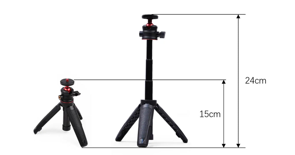 - 3 Levels Adjustment: The tripod can be extended to a height of 24cm.