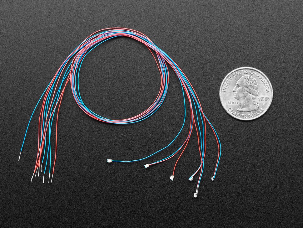 Wires are approximately 30cm long, 30AWG wire wrap wire. The wires can be sewn over, or embedded in a casing. Since the wires are single-strand wire-wrap they will hold their shape and can be threaded through a small space.