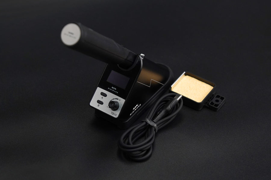 The Miniware TS1C soldering station is a cordless smart station that utilizes a super capacitor within its soldering iron. This super capacitor allows for numerous soldering connections and provides an OLED display for monitoring power and temperature. The soldering iron and station are connected via Bluetooth.