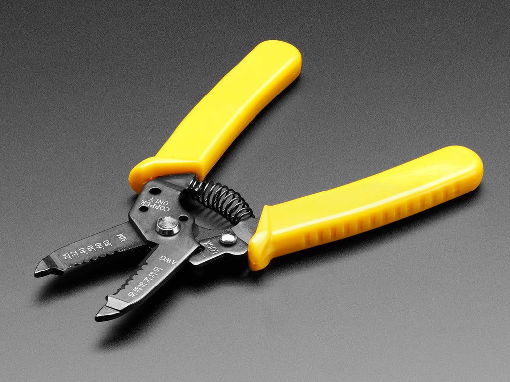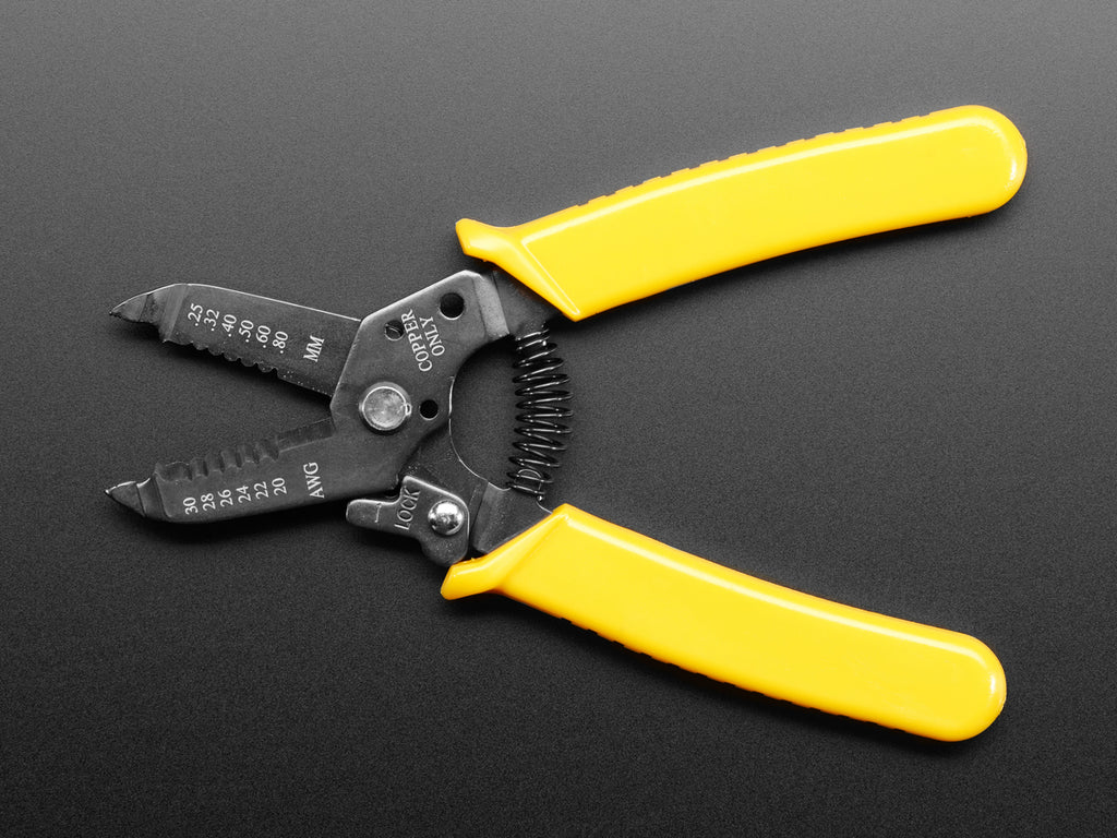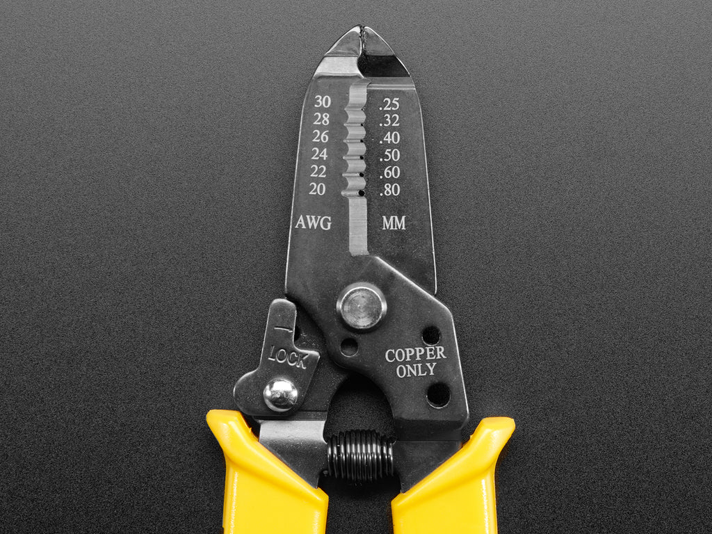 We've upgraded our basic 'adjustable' wire strippers to these multi-sized wire strippers. They include: 20-30 AWG strippers, wire cutters, 'plier' tips, and a wire loop. Ground blades for precision cutting. Spring return, comfy molded handles and a closing-lock.