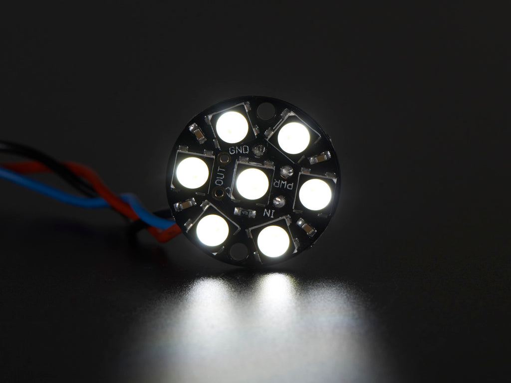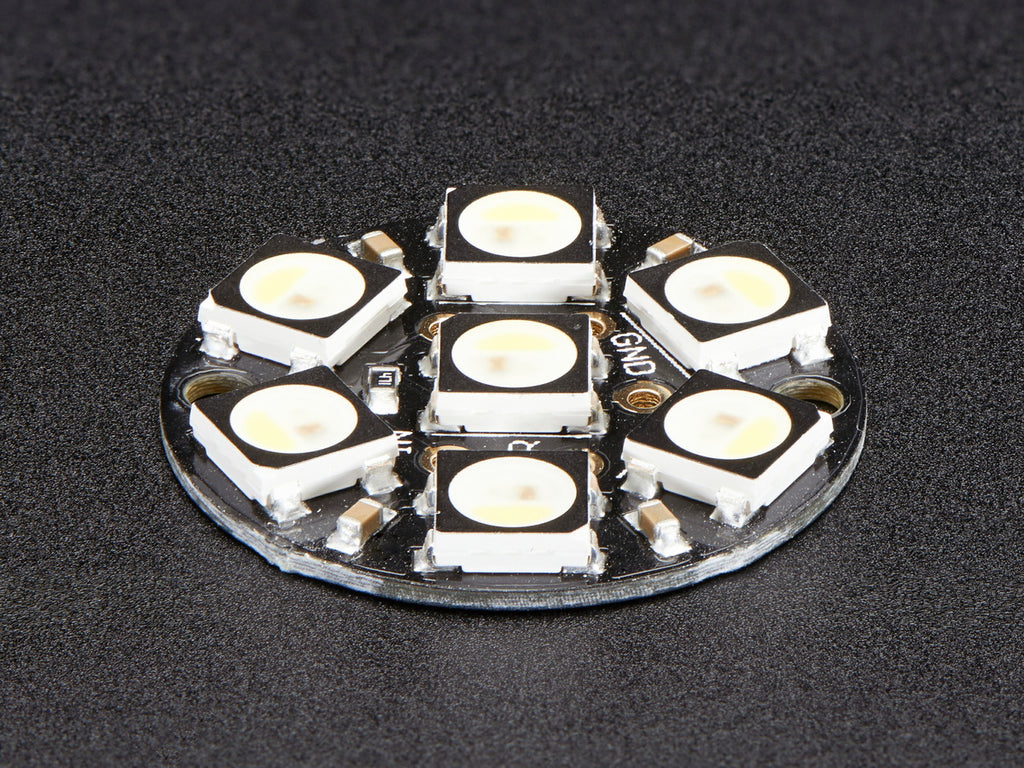 Comes as a single round board with 7 individually addressable RGBW LEDs assembled and tested.