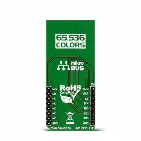 OLED C click is equipped with the 96x96 high-color OLED display. It can display up to 65K/262K different colors and shades on a compact size display, based on the OLED technology. The OLED technology provides a very good brightness-to-contrast ratio, doesn’t require any backlight - since the pixel elements emit light on their own, better angle of viewing - compared to traditional TFT screens, better power consumption, better picture quality, better response times and more. The OLED technology is constantly being perfected and it is slowly taking over the existing liquid crystal technology (TFT).