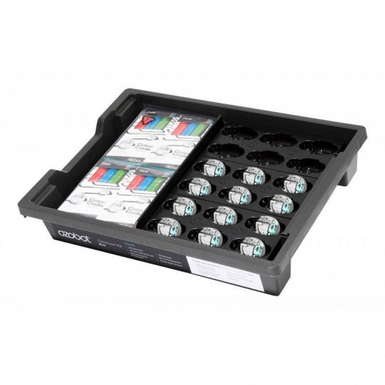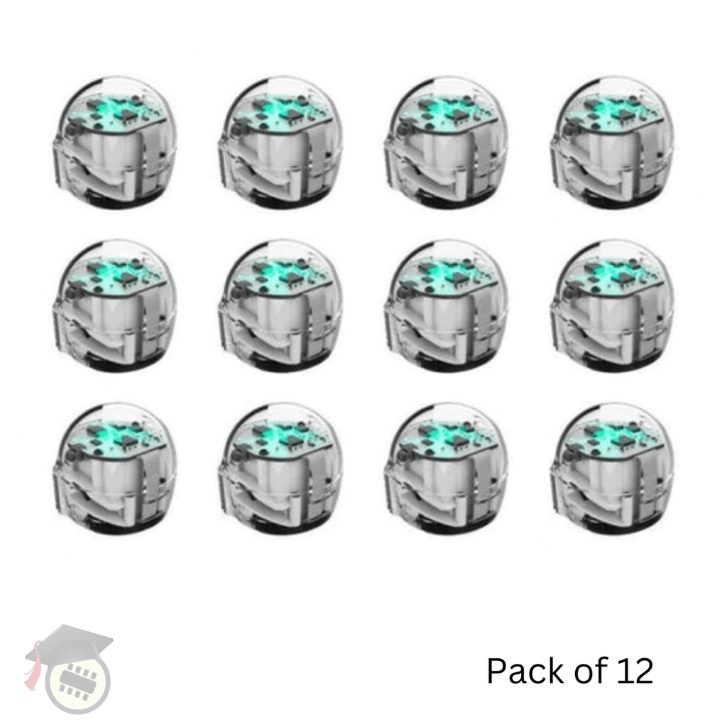 This kit includes 12 programmable Ozobot Bit+ robots, a charging cradle that can accommodate all the robots, and materials for organising various Ozobot activities: marker pens for colour recognition and line following, stickers, etc.