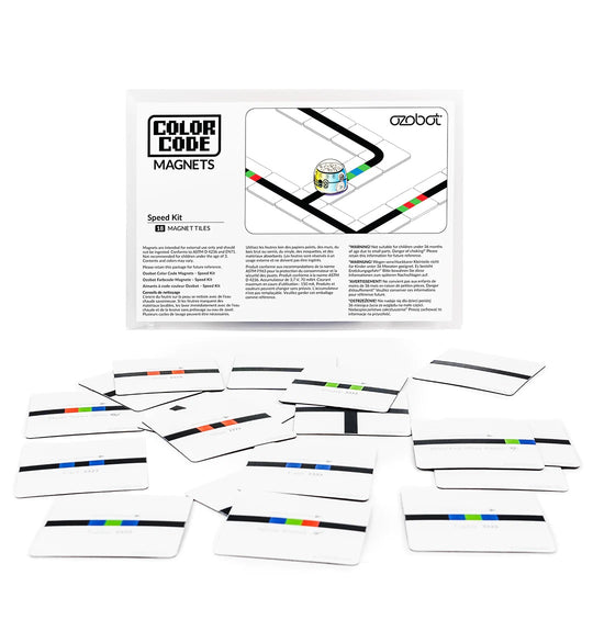 Ozobot Colour Code Magnets offer a fun and interactive way to teach coding principles to students as young as Pre-K. The Speed Kit includes 18 puzzle pieces that pair with the Colour Code Magnets Base Kit and an Evo robot for a hands-on educational experience that introduces the foundational concepts of coding with additional speed colour codes for expanded learning opportunities.