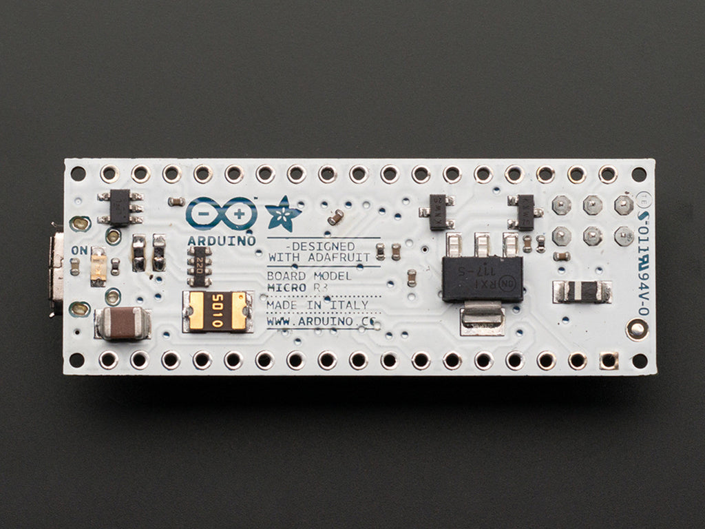 This version of the Micro comes without headers pre-soldered on and runs at 5V logic with a 16MHz crystal.