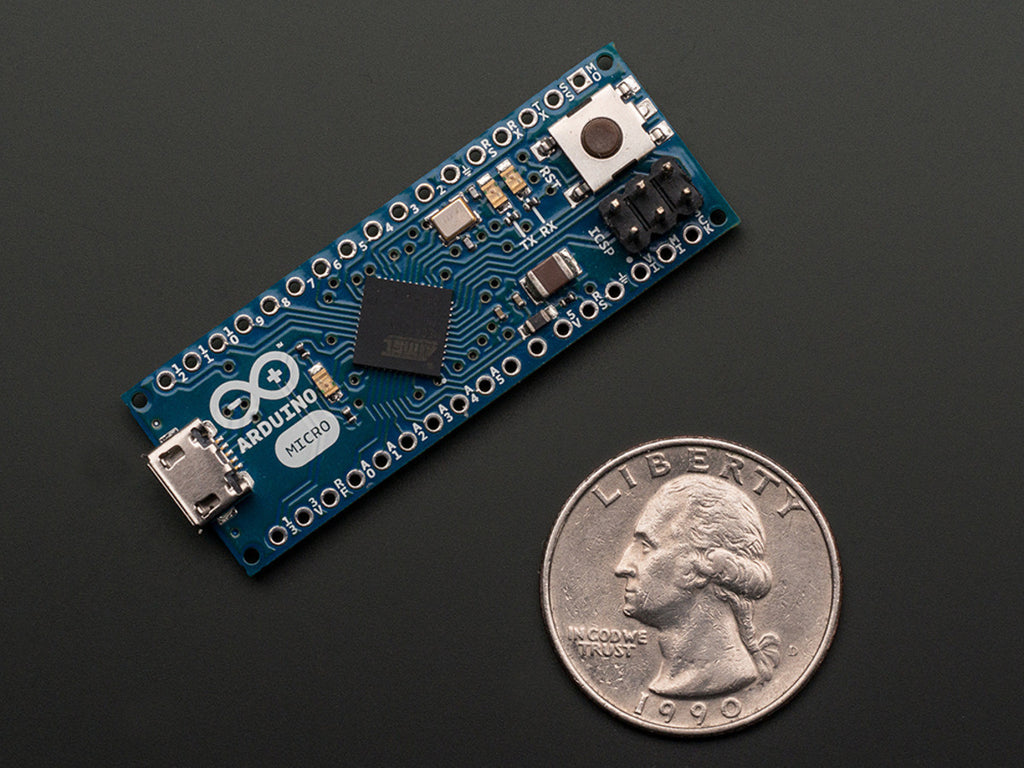 Squee! It's the cutest, tiniest little Arduino yet! The Arduino Micro packs all of the power of the Arduino Leonardo in a 1.9" x 0.7" (48mm x 18mm) size. Although it may look like a stick of gum, its actually a USB-native 8-bit microcontroller, with 32K of flash, and 2.5K of RAM. You can program it directly via the USB micro connector on one end (or for the advanced users, the 6-pin ISP header). The Arduino Micro is a microcontroller board based on the ATmega32u4 (datasheet), developed in conjunction with Arduino.cc and Adafruit.