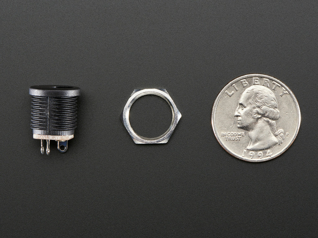 This power jack is designed to easily attach to a panel up to 8mm thick (0.315" or 5/16") and fit 2.1mm power plugs snugly and securely. Perfect for adding a power connector to your project enclosure. We like this jack in particular for its long body (so you can use it on thicker wooden panels), sturdy PCB spacer with 3 easy-to-solder eyes and 'forgiving' plastic lip that hides the drill hole.