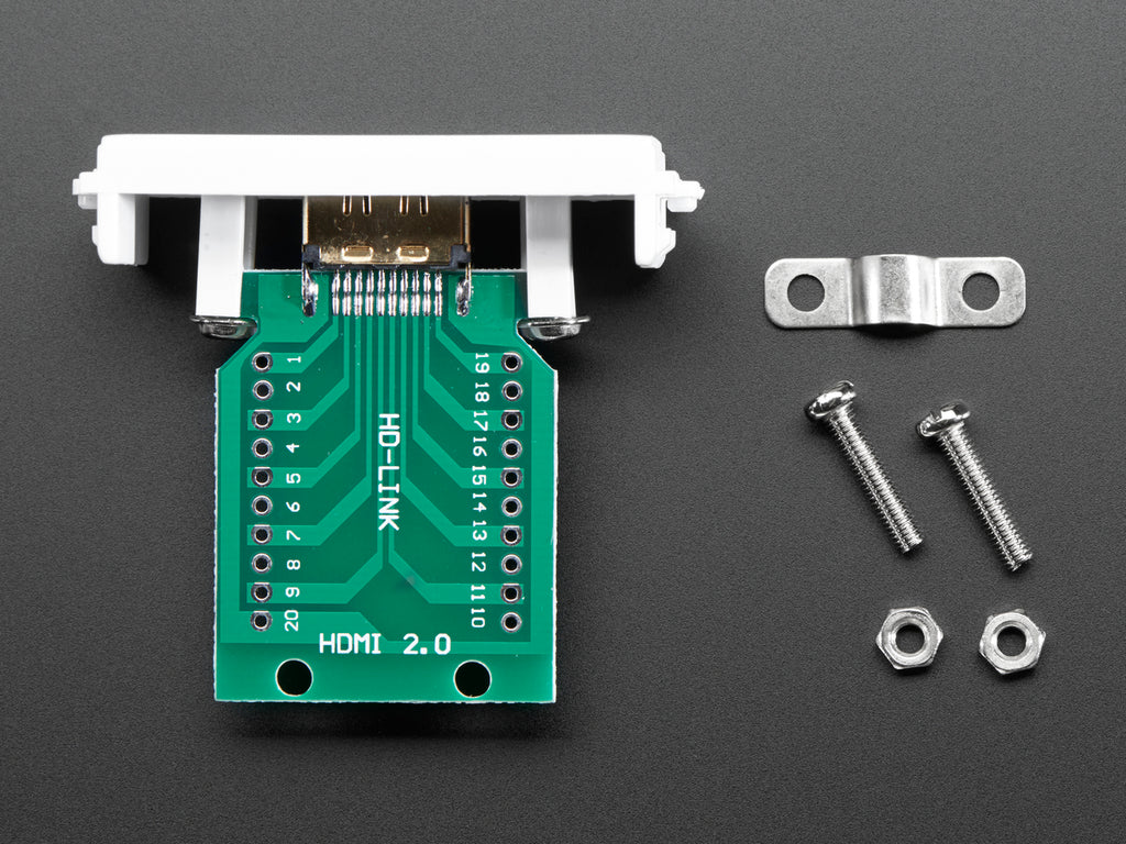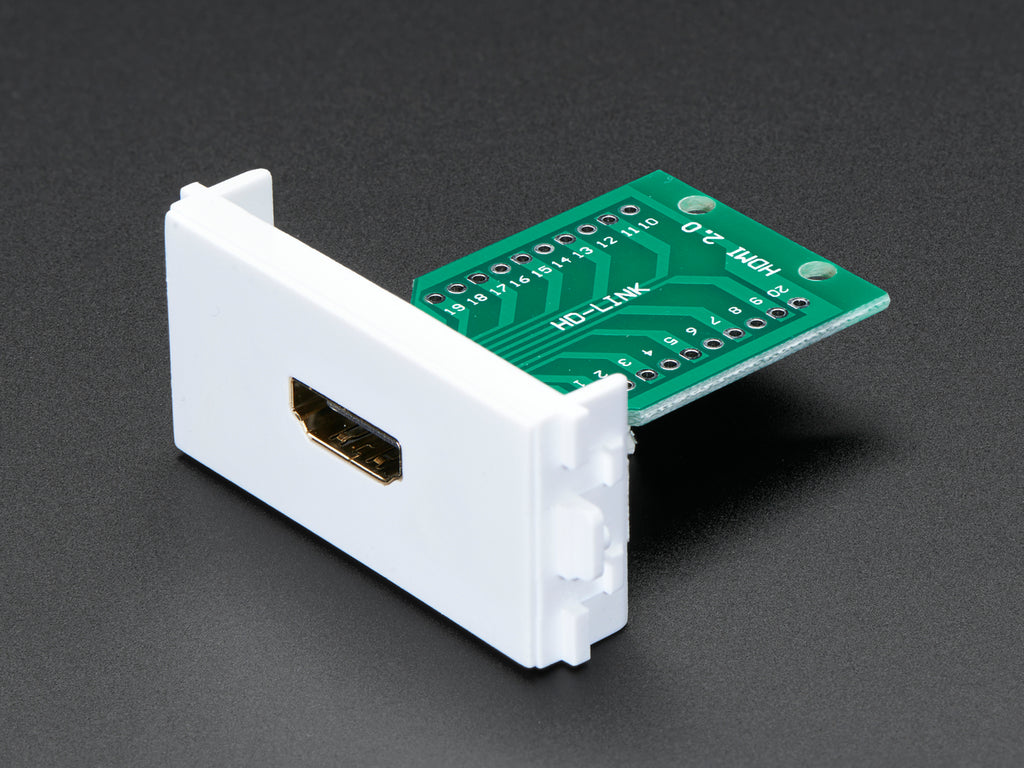 Make your own custom HDMI input or HDMI interface with ease, using this HDMI Socket Breakout. You get a nice solid PCB with an HDMI socket that you can solder to assemble your own wiring jigs. You can add in some terminal blocks to make the wiring easier, or check out the HDMI Socket to Terminal Block Breakout which comes with them built in.
