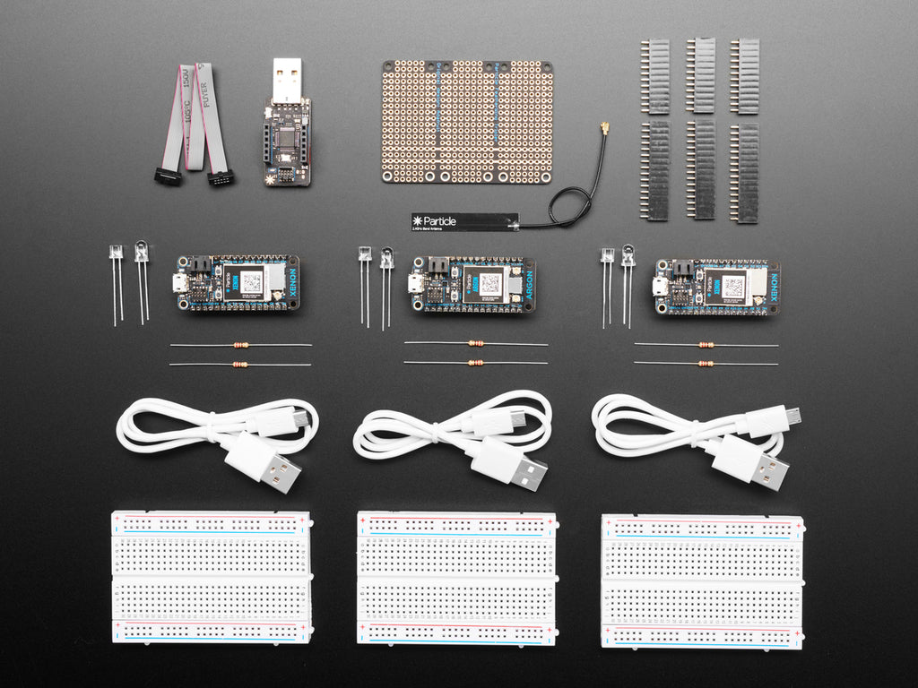 The bundle comes with three mesh-ready boards: the Argon, a powerful board that can act as a gateway between your home Wi-Fi network and your local Particle Mesh network and two Xenons, the end points or network repeaters, so you can start to experiment with a multi-device Particle Mesh network.