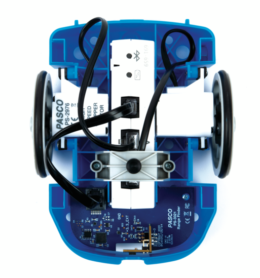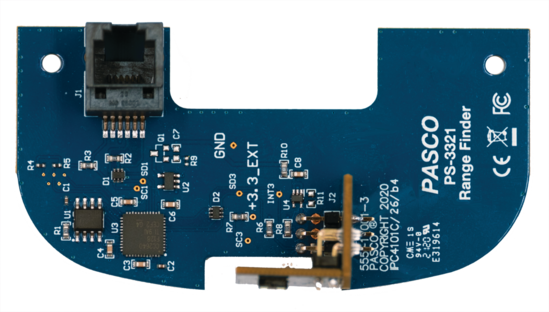 The Lidar sensor on the front of this circuitboard uses light reflectivity to measure the distance between itself and objects in front of it. The user then can program the PASCObot to avoid hitting objects or even hit them if they desire. The Range Finder is particularly useful in the PASCObot with a Gripper Accessory. The Range Finder can find the distance to the objects that the PASCObot is going to pick up. Code can be run directly from SPARKvue or Capstone software, or uploaded to the //control.Node so guiding decisions can be made onboard the PASCObot, avoiding the communication delays over Bluetooth. However, even though the PASCObot is running autonomously, it is still possible to connect wirelessly via Bluetooth to the PASCObot to monitor data from the onboard sensors in real-time.