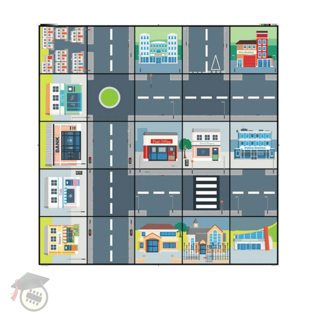 The People Who Help Us Mat measures 75cm x 75cm (5x5 Bee-Bot Squares)