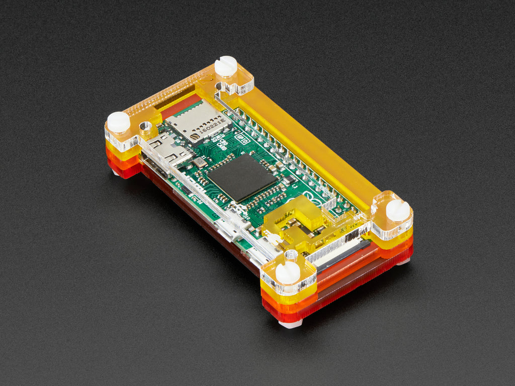 Each layer is laser-cut from colorful, lightweight, and high-quality cast acrylic. All of the primary ports and GPIO pins are accessible (it encloses the micro-SD slot). No tools are necessary for assembly or disassembly and the case comes in at a conveniently lightweight 34g.