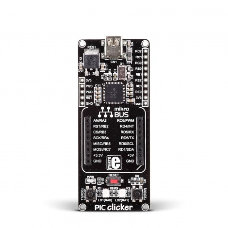 • mikroProg connector and headers for interfacing with external electronics.
