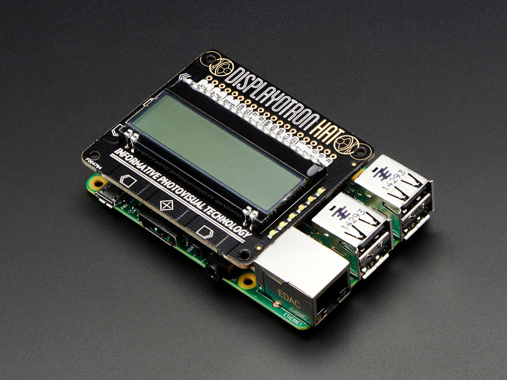 The Pimoroni Display-O-Tron HAT is an upgraded HAT version of our Display-O-Tron 3000!