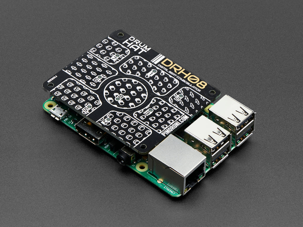 The Drum HAT is compatible with Raspberry Pi 3, 2, Zero, B+, and A+ (any Pi with a 2x20 connector) and comes fully assembled with a treasure trove of examples to get you started.