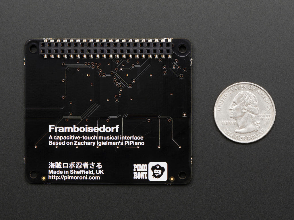 This HAT comes with 16 touch sensitive buttons, up and down octave controls, and 13 piano keys from C to shining C! Each button on Piano HAT can be individually watched in Python and hooked up to whatever mad-cap contraption or project you can imagine.