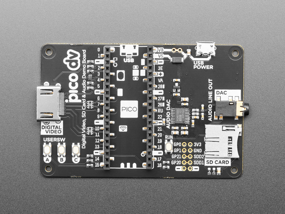 Please note that DV Demo Base is an experimental dev board for intrepid AV haxxors, which relies on third party software that we neither fully understand or maintain. You may need prior experience with Pico projects and C++ to do anything useful with it.