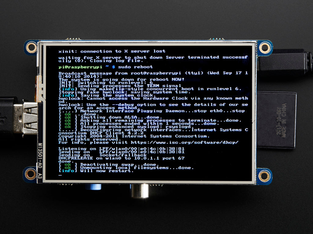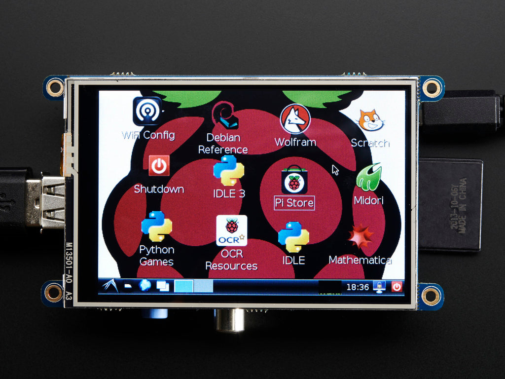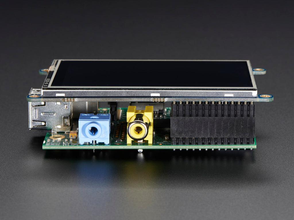 Best of all, it comes fully assembled and ready to plug into your Pi! You can use this as a display for running the X interface, or pygame. You can also have an HDMI display seperately connected. There's four mounting ears that can be used to attach the display & Pi to a bezel, or snap them off with pliers (they're perforated) for a slick exactly-the-same-size-as-a-Pi look.