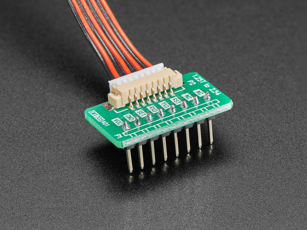We give you the sensor box as well as the cable and a 0.1" / 2.54mm breakout board so you can wire it easily. You only need power plus one data pin (for the UART TX). Power is 5V, logic is 3.3V