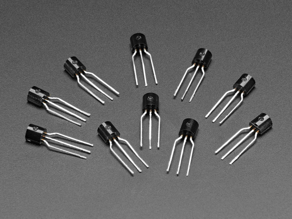 Transistors are powerful little electronic switches, and we really like these PNP transistors whenever we need to control medium-power electronics, such as small motors, solenoids, or IR LEDs. We find them so handy, they now come in a pack of 10!