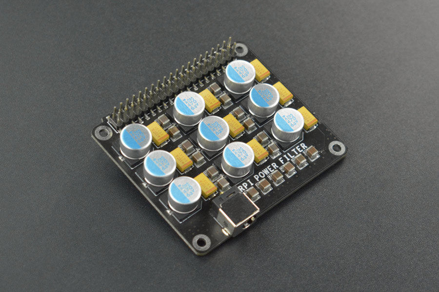 This Raspberry Pi Power Filter Board integrates multiple solid capacitors, ceramic capacitors and tantalum capacitors to perform parallel hybrid filtering.