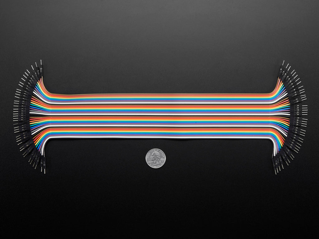 Handy for making wire harnesses or jumpering between headers on PCB's. These premium jumper wires are 12" (300mm) long and come in a 'strip' of 40 (4 pieces of each of ten rainbow colors). They have 0.1" male header contacts on either end and fit cleanly next to each other on standard-pitch 0.1" (2.54mm) header. The best part is they come in a 40-pin ribbon cable. You can always pull the ribbon wires off to make individual jumpers, or keep them together to make neatly organized wire harnesses.