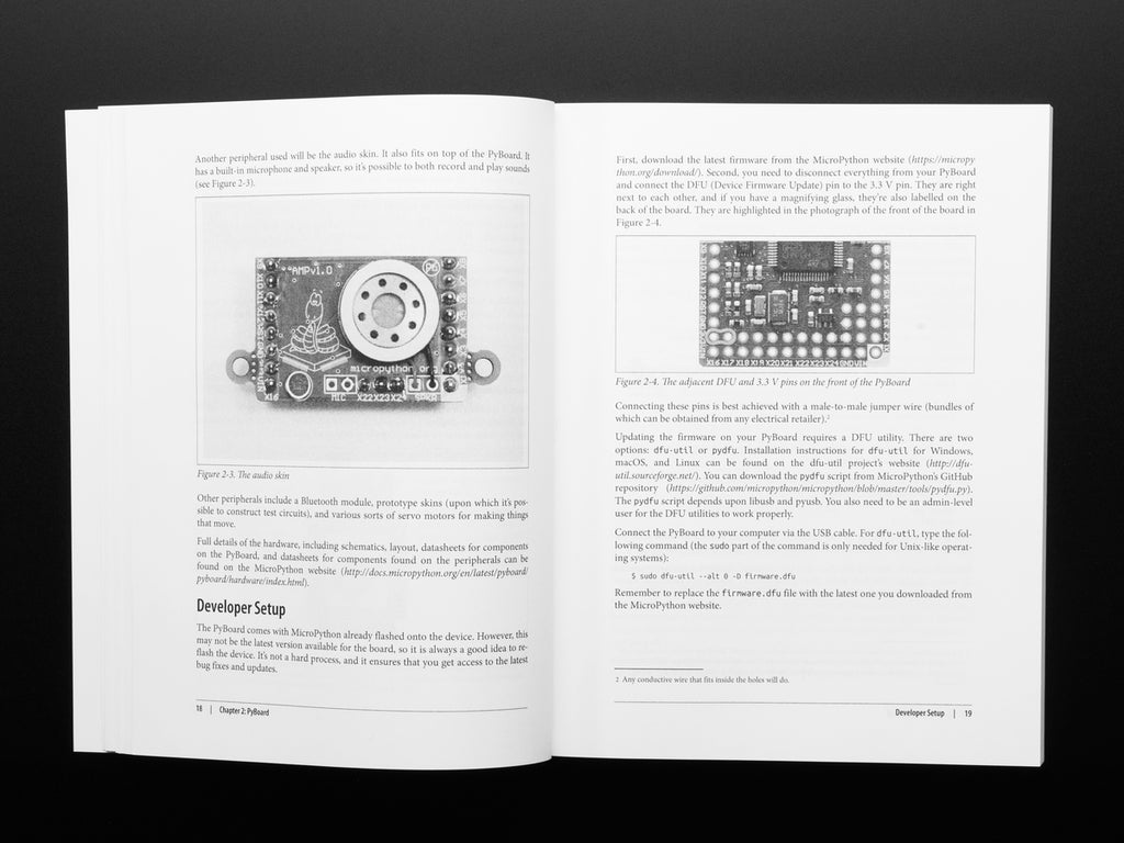 - Dive into practical MicroPython examples: visual feedback, input and sensing, GPIO, networking, sound and music, and robotics