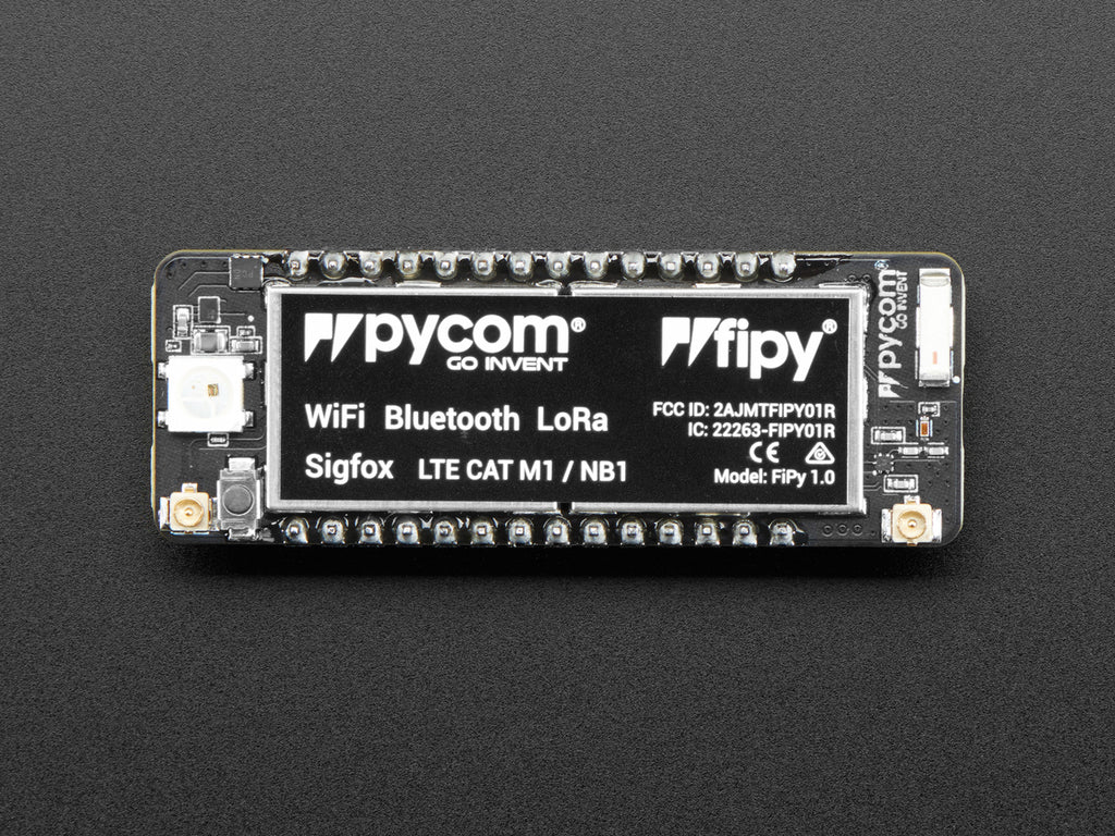 Imagine five networks in one perfectly-formed, same-small-foot-print-as-WiPy- LoPy-and SiPy, IoT development board. MicroPython enabled. FiPy includes WiFi, Bluetooth LE, LoRa, Sigfox and dual LTE-M (CAT M1 and NBIoT). That means you never have to pick-and-choose your IoT transport ever again - the FiPy gives access to all the world’s LPWAN networks on one bitty board.