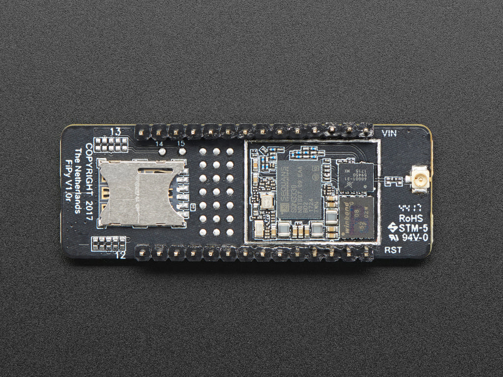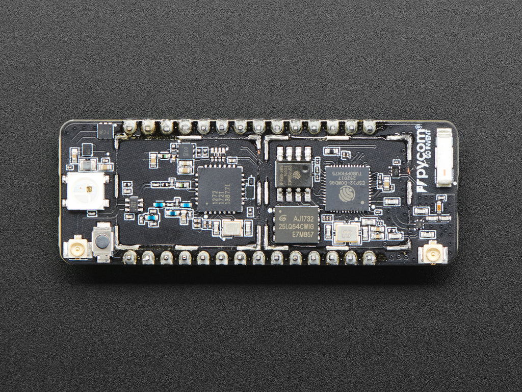 This one-of-a-kind board gives you full flexibility during testing, install, deployment and even later when you want to switch real-time your airtime network provider. You can switch when the time is right for you or set some parameters that will do so automatically. The FiPy has a built-in operating system that supports MicroPython, the lightweight cousin of the Python web programming language. You can use this board as is, or develop your application, then minimize the design with one of the smaller and simpler Pycom boards (if, say, you realize you don't need SigFox or Cellular)
