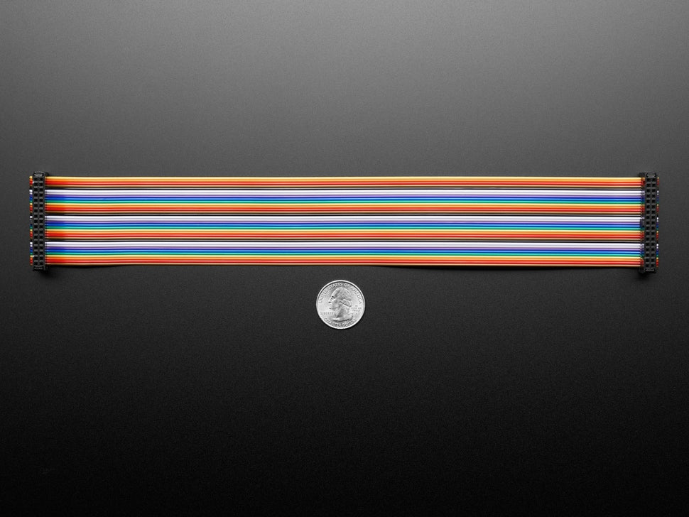 Often used for floppy drives, 34 pin IDC cables have a 2x17 array of pins. This cable will let you connect one port to another with a festive rainbow design! Both ends have strain relief and keyed connectors. Perfect for retro archiving projects or whenever you have a 2x17 0.1" header on two sides of a board that need connecting.